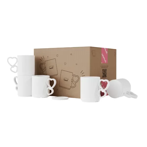 ♥ La caja contiene 24 tazas Mimo con asa de corazones con sus bases sublimables encastrables.
